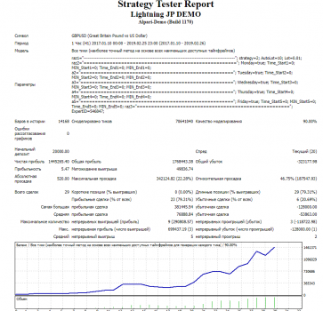 Советник тестировался за 2017, 2018, 2019 года в тестере стратегий, Forex4you, GBPUSD, стандартный демо счет, качество котировок 90%, настройки по умолчанию, H1, стартовый депозит 100 USD. Показатели достаточно не плохие, однако для реальной торговли необходим брокер с минимальными проскальзываниями и торговым спредом.