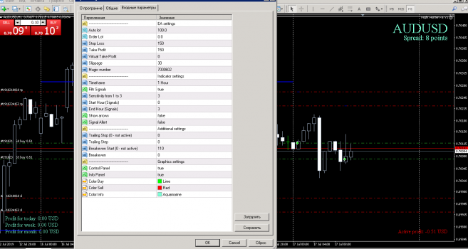 В советнике множество настроек, Вы можете подстроить тактику под Ваши потребности. С настройками по умолчанию (с минимальными рисками) получился довольно не плохой советник, с учетом того, что в нем нет никакого мартингейла. Конечно робот новый, его нужно тестировать, искать лучшие варианты настроек, и именно поэтому его стоимость всего 12 USD. Если Вы видите потенциал данного советника и любите ночной скальпинг, этот робот для Вас!