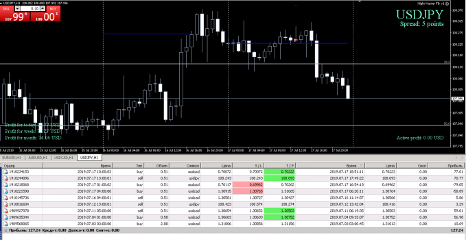 Ну и рекомендации. Мы проверяли советник на нескольких парах, достаточно не плохо показали себя пары с долларом и йеной. Робота можно использовать на нескольких парах сразу так как хорошие и точные сигналы (с настройками на минимальные риски) будут появляться не часто. Если на одной паре сигналы будут 1-4 раза в месяц, то на 10 парах, эти цифры увеличатся минимум в 10 раз. Советуем использовать рабочий период индикатора от H1!